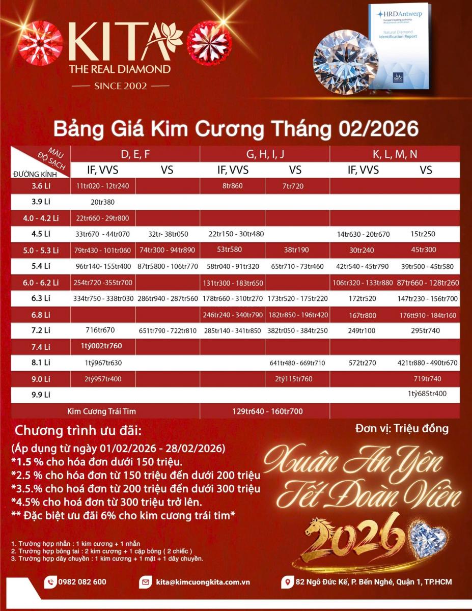 • 4.5% cho hóa đơn từ 300 triệu trở lên ❤️ Kim Cương Trái Tim – Lời Chúc Yêu Thương Đầu Xuân